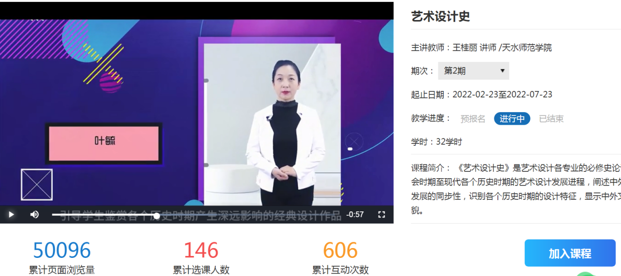 通过不断探索,2022年3月,我院王贵禄教授主讲的“电影概论”与王桂丽老师主讲的“艺术设计史”两门课程入选国家高等教育智慧教育平台,该平台是由教育部委托、高等教育出版社有限公司建设和运行维护、北京理工大学提供技术支持的全国性、综合性在线开放课程平台。是国家为了应对了新冠肺炎疫情带来的停教、停学危机,审时度势、化危为机,掀起了一场高等教育领域的“学习革命”。首次入选的两门课程便是我院课程改革的优秀成果,课程设计以学生为中心,选择适合学生的课程资源,采用多种方法进行授课,取得了良好的课堂效果。