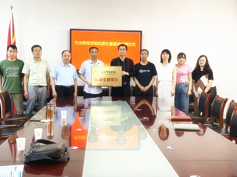 2022年6月21日,我院院长王贵禄教授与天水三中校长王建兵,在天水三中举行了优质生源基地挂牌仪式,天水三中全部教师参加了挂牌仪式。6月24日,王贵禄教授与秦安一中王二虎副校长、李江副校长、姬云飞主任等举行了优质生源基地挂牌仪式。挂牌仪式举行完毕,王贵禄教授播放了我校最新宣传片《芬芳》,对我校近年来在教学、科研方面的成就,以及各类设施做了详细介绍,对2022年我校的招生计划做了解读,并就高三教师的相关问题作了答复。