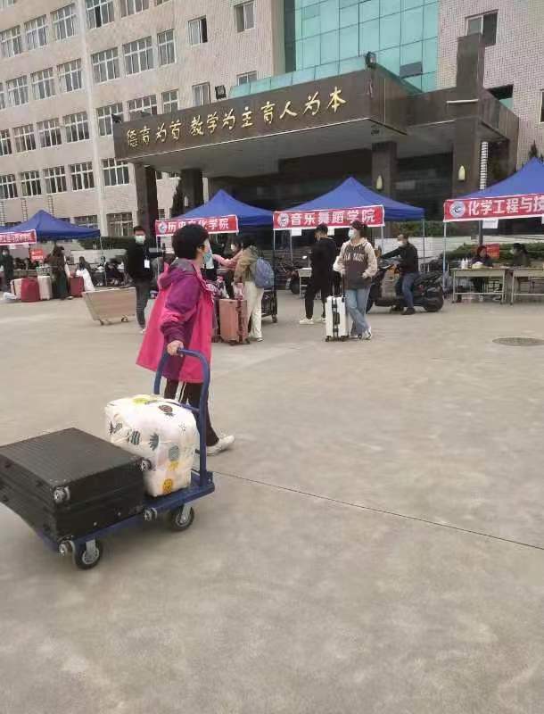 返校中,全体教职工化身志愿者,投入到迎接学生返校工作之中,为返校学生提供志愿服务。一包一包的行李、一句一句的叮咛,一趟一趟的护送……为保障学生安全、顺利、有序返校,我院在严格落实校园疫情防控各项措施的同时,精心部署、周密安排,为返校学生提供精准、便捷、温暖的服务。
