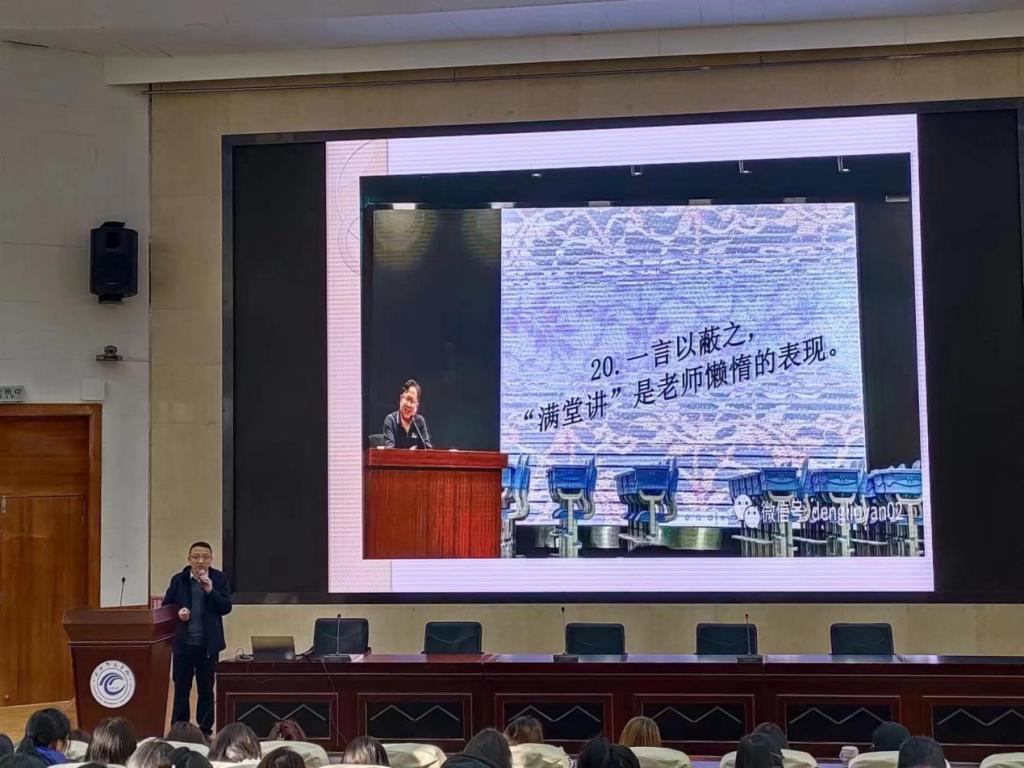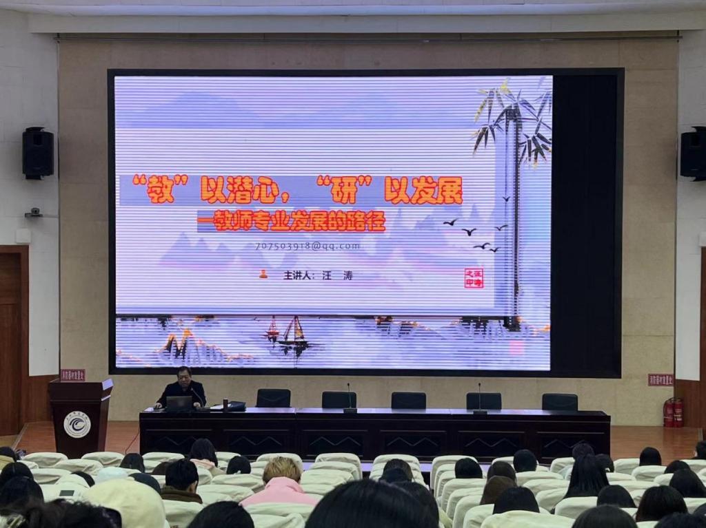1月4日下午和晚上,甘肃省陇原名师、甘肃省特级教师、天水市第六中学原副校长、我院兼职硕士生导师汪涛作了“新时代·新语文·新课堂·新教法”和“教以潜心,研以成长”的专题讲座。汪涛老师结合新课标讨论了语文教学的热点问题和前沿理论,阐述了自己的观点,为同学们厘清了教学思路。