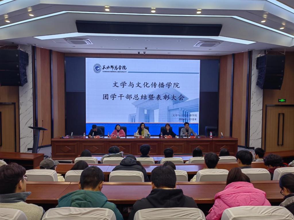 1月12日晚,我院在四号报告厅举行了团学干部总结暨表彰大会,学院党委副书记董妍、团委书记孔媛媛、学院辅导员、学生会团学干部、各年级主要班干部共计130人出席本次会议,会议由学院团委书记孔媛媛主持。