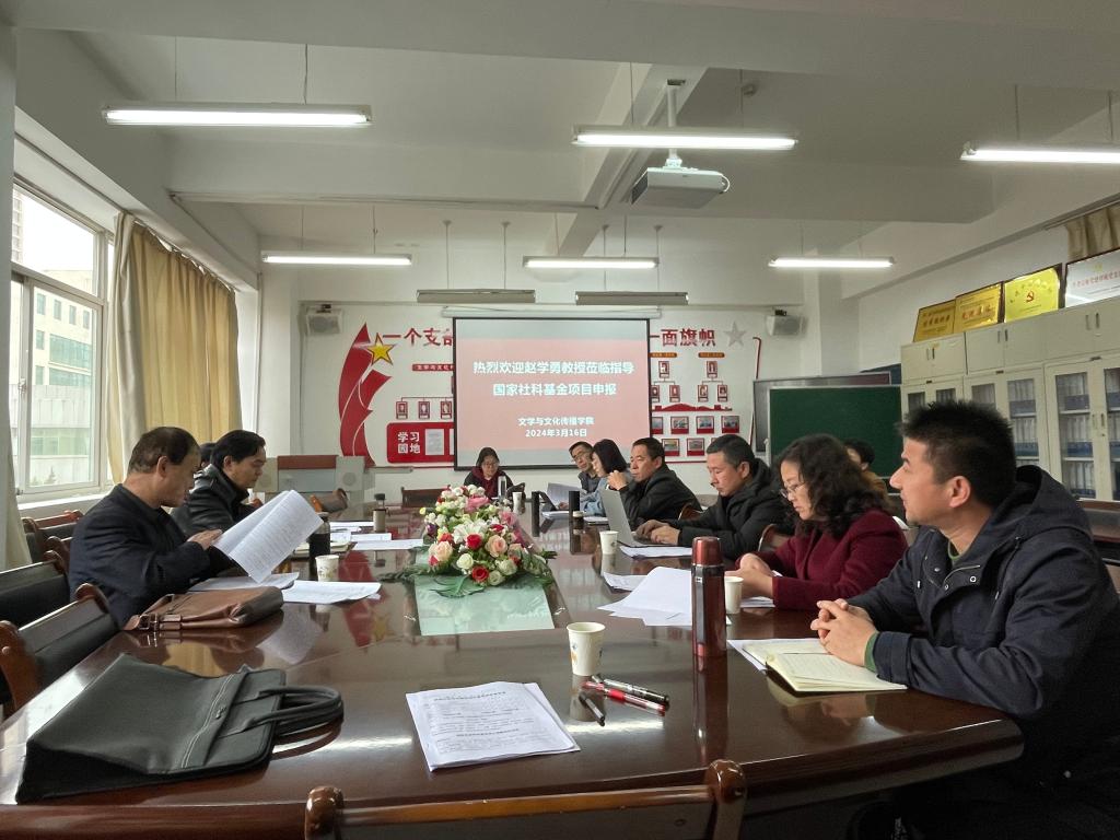 为进一步提高国家社科基金项目的申报质量,2024年3月16日上午,我院在208会议室举行2024年度国家社科基金项目申报指导会。会议邀请陕西师范大学文学院赵学勇教授、我院王元忠教授担任评审专家,拟申报项目的教师10余人参加。会议由学院院长王贵禄教授主持。