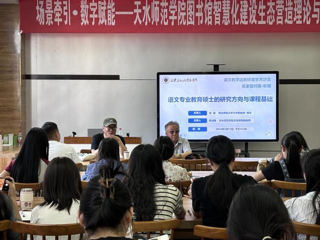 5月17日下午15点,语文教学法教研室学术沙龙活动继续在雷达文学馆举办。此次沙龙活动由西北师范大学博士生导师靳健老师主讲,郭治锋老师主持,张维伟老师以及2023级学科教学(语文)专业全体研究生参加。