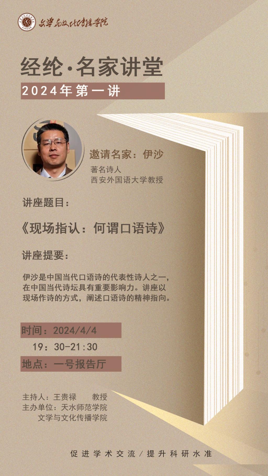 【时间地点】2024年4月4日晚19:30-21:30,我院一号报告厅